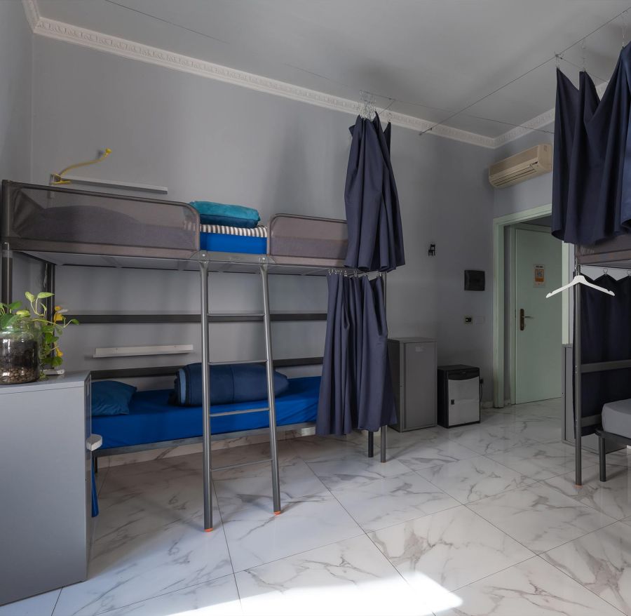 Le sistemazioni tipiche per i soggiorni in Ostello prevedono posti letto in camere condivise con altri Ospiti. Tutte le camere condivise dell'Ostello degli Elefanti prevedono una dotazione minima che comprende letti singoli con materasso ortopedico, tendina privacy, luce di cortesia, armadietti con serratura.